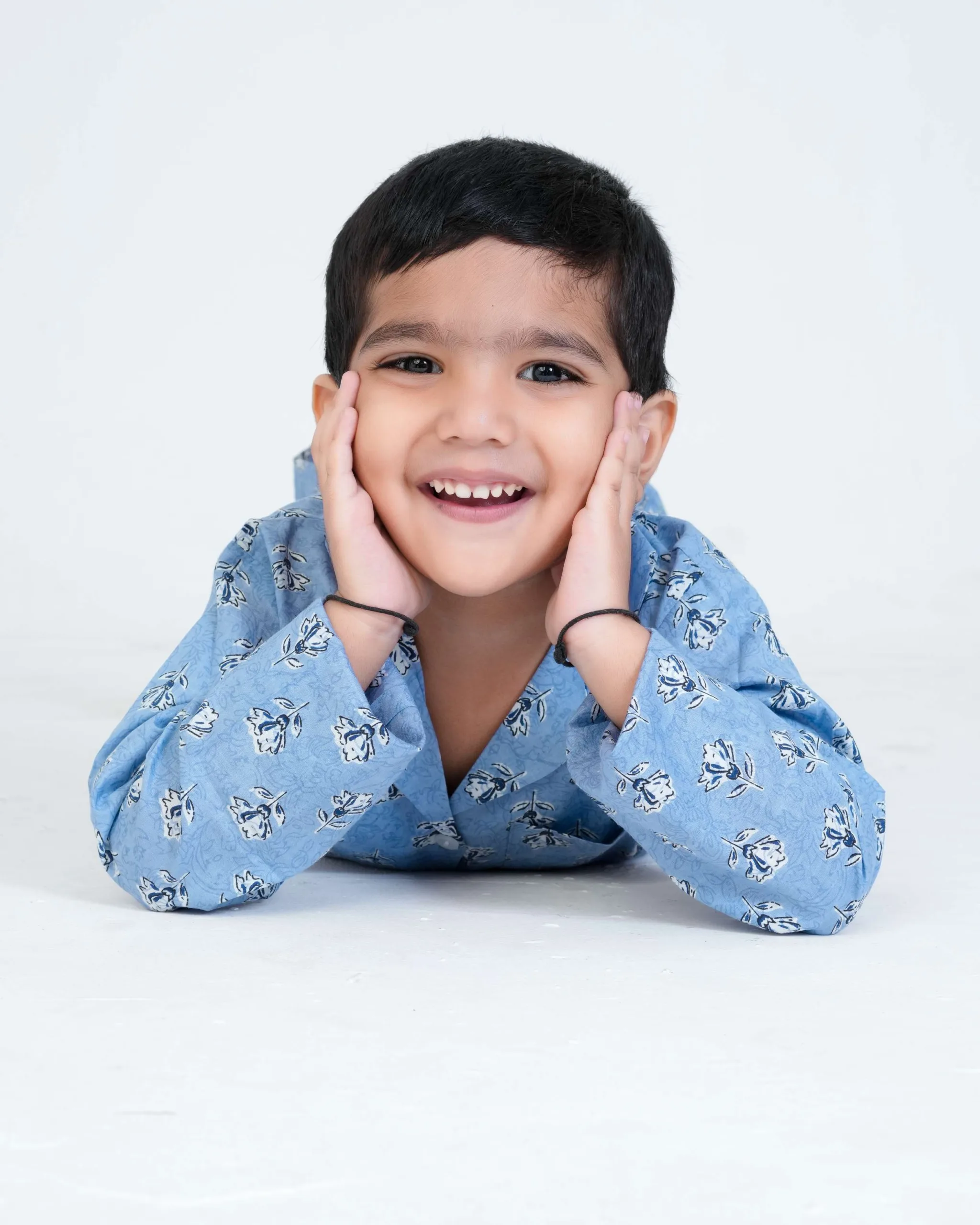 Make bedtime fun and cozy with our flower sanagneri Printed Kids Night Suit, crafted from soft, breathable 100% cotton to ensure your child’s comfort all night long. Featuring cute small buti prints, this night suit is designed to make your little one excited for sleep time!