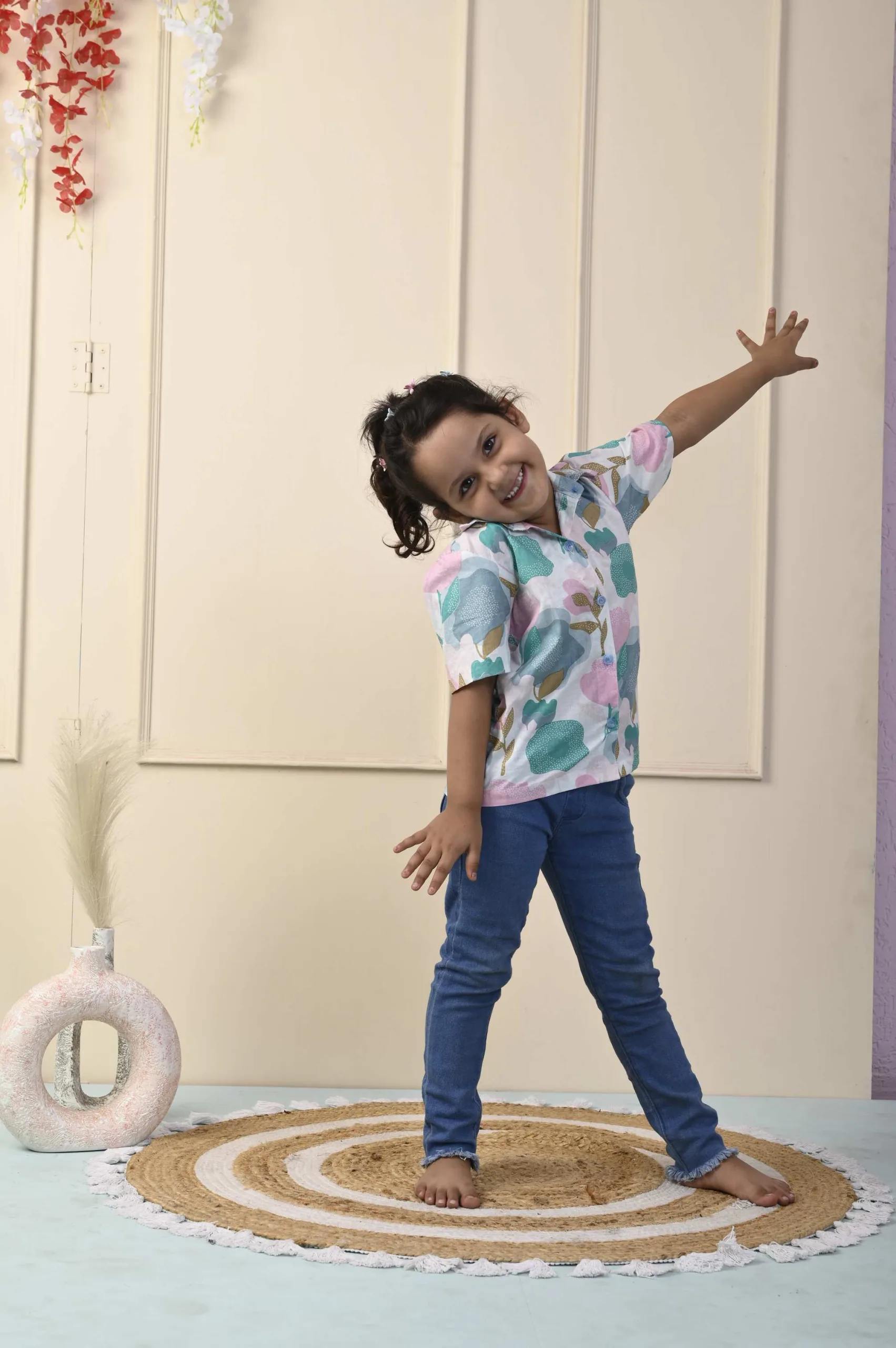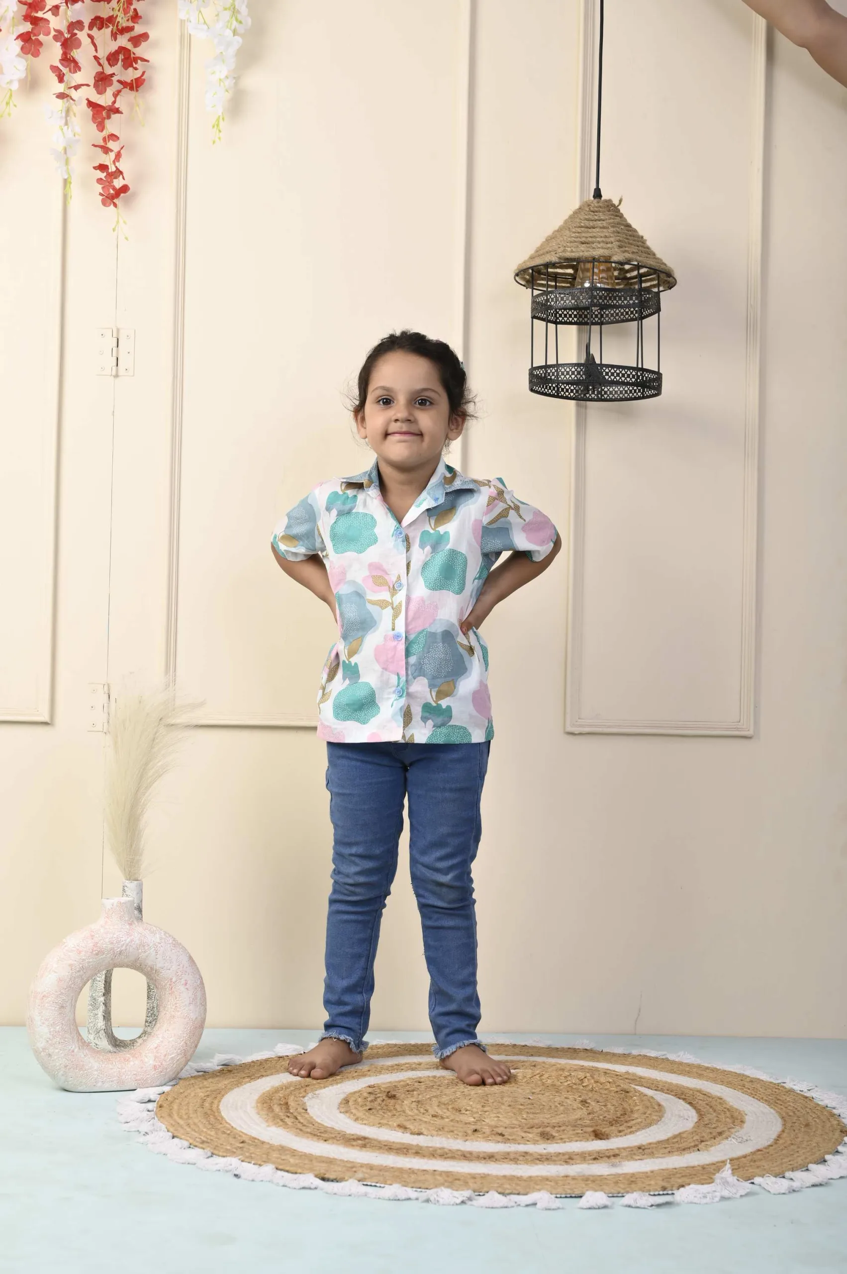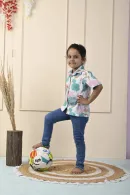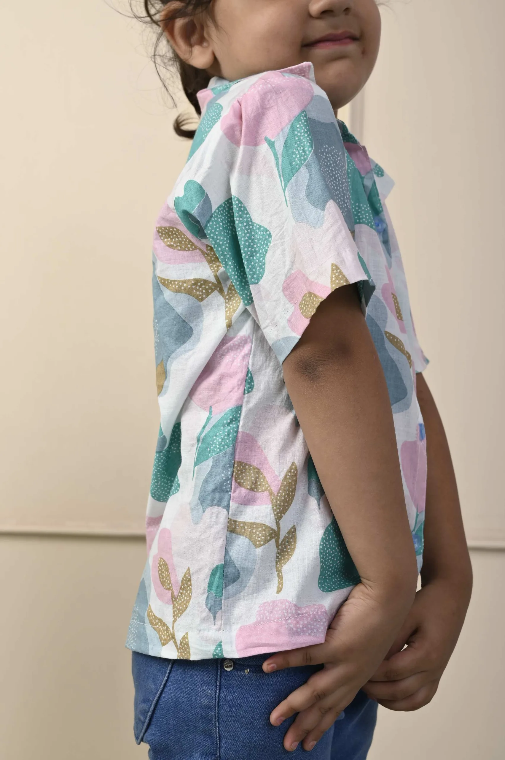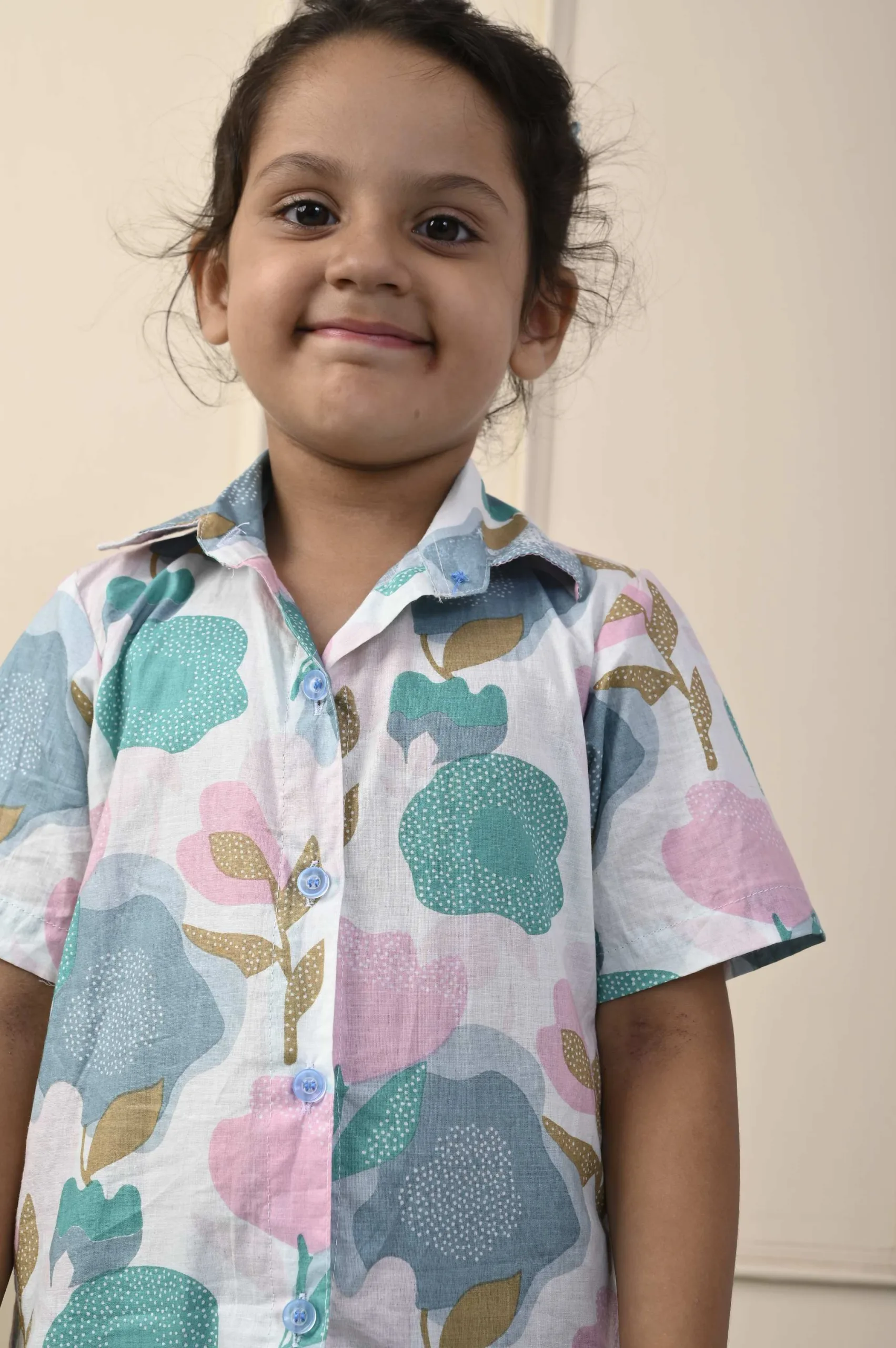 This White pastel short cotton shirt is ideal for your child’s summer wardrobe. The shirt is made of cotton fabric and features a handblock print, a normal collar, and short sleeves. For any occasion, pair this shirt with a pair of jeans or shorts. It has a botanical print.